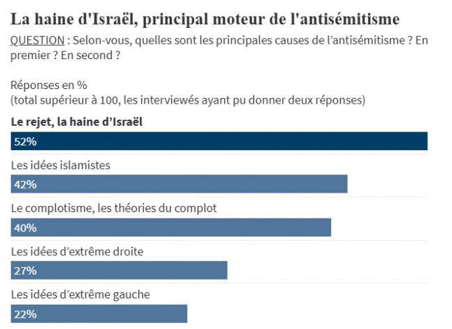 « On voit maintenant un antisémitisme d’intimidation qui s’installe. Un Français sur cinq considère désormais justifié de prendre à partie des Français juifs en raison de leur soutien réel ou supposé au gouvernement israélien. »