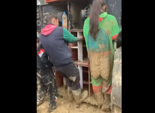 Extrait édifiant d’une rave avec un couple de teufeurs dans la boue : elle, danse devant le mur d’enceintes ; lui, a carrément la tête dedans. On ne peut pas faire plus clair comme message : l’oubli par l’abrutissement.